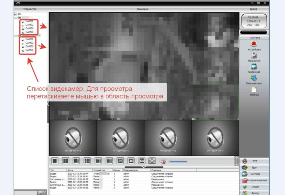Un grand nombre de caméras vidéo connectées au système chargent considérablement l'ordinateur personnel et réduisent ses performances. Cela conduit souvent à des dysfonctionnements et des erreurs de travail. Pour réduire la charge sur l'ordinateur, vous devrez cliquer sur l'onglet "Mode secondaire". Pour désactiver complètement le registraire, vous devez double-cliquer sur son nom.