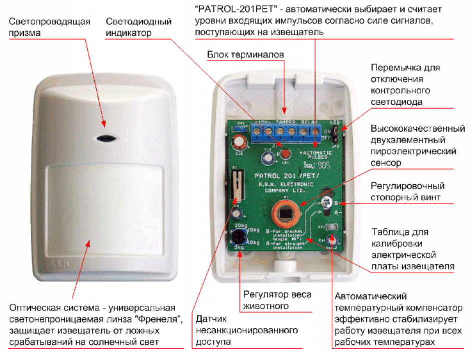 - Le capteur infrarouge, en particulier le type passif, est sans danger pour la santé, le fonctionnement du système de sécurité n'effraie pas les animaux domestiques;