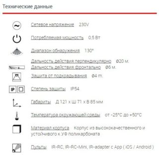 - Degré de protection - IP. Le premier chiffre indique la protection contre la poussière, le second contre l'eau. La lecture minimale est de 20. L'appareil est protégé contre les contacts avec les doigts, mais pas à l'abri de l'eau. L'indicateur le plus élevé est 65, un tel capteur est monté dans des pièces humides.