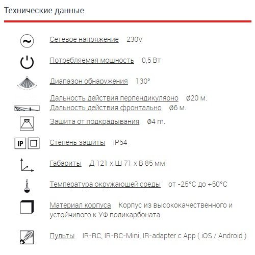 - Capacité de commutation - indique le nombre de dispositifs d'éclairage connectés - jusqu'à 40 à 3000 watts.