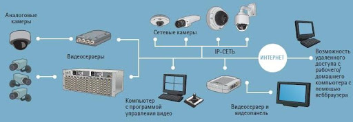 La structure typique des systèmes de vidéosurveillance modernes est très simple : elle contient plusieurs caméras et un module de contrôle (PC ou stockage d'archives vidéo) répartis autour du périmètre. Il comprend également des lignes filaires ou un réseau Wi-Fi local. Avec leur aide, les informations vidéo des caméras sont transmises au périphérique de stockage et aux moniteurs. Pour organiser la surveillance simultanée de plusieurs caméras à la fois, des routeurs sont utilisés.