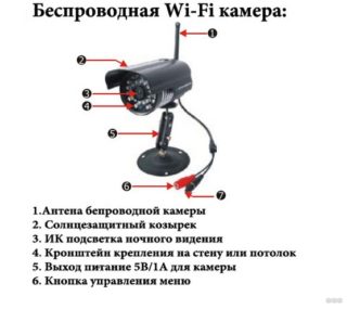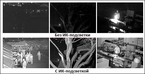 Une caméra vidéo standard avec une option de suivi dans l'obscurité a une conception simple composée d'une puce, d'un objectif, de capteurs, d'un support et d'un boîtier. La principale caractéristique de ces appareils est la présence d'un éclairage IR, qui est chargé d'organiser le contrôle dans des conditions de mauvaise visibilité. Ils fonctionnent selon le schéma habituel, pendant la journée la matrice de telles caméras perçoit le rayonnement UV, qui se transforme en infrarouge la nuit, tandis que l'appareil lui-même commence à diffuser une image en noir et blanc.