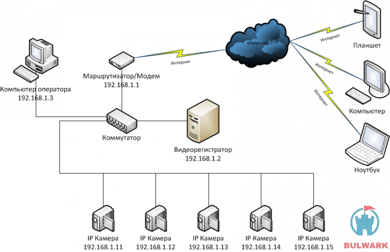 Un système de vidéosurveillance est le plus souvent un réseau local avec accès à Internet. Une connexion directe à Internet est également possible.
