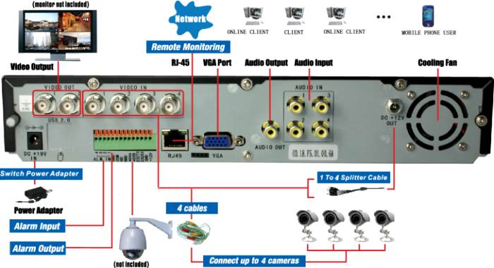 Un magnétoscope est l'un des moyens d'organiser la vidéosurveillance. Il vous permet de stocker plus d'enregistrements qu'un caméscope avec une carte mémoire et coûte moins cher que d'installer des caméras IP et de louer du stockage dans le cloud. Cependant, le niveau de sécurité est inférieur à la dernière option : toutes les données sont situées sur un disque dur, qui peut être simplement récupéré à partir de l'enregistreur.