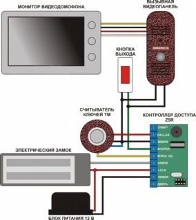 Toutes les parties de la structure de l'interphone sont réparties entre l'allée de l'immeuble résidentiel et l'appartement de l'utilisateur. Le panneau extérieur avec des boutons placés dessus est monté à l'entrée de l'entrée et est utilisé pour composer un code numérique transmis par le circuit de commutation. Il y a aussi un lecteur de code, dans lequel les résidents de l'entrée insèrent le porte-clés et ouvrent la serrure électromagnétique (retirez la serrure du loquet).