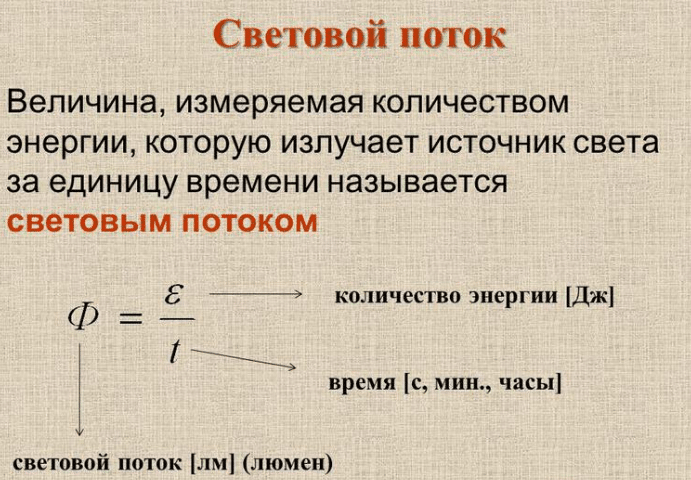 - F est la puissance du flux lumineux, lm ;