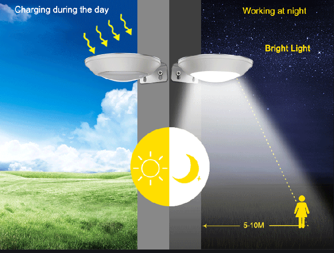 La cellule photoélectrique et le détecteur de mouvement fonctionnent en tandem, n'allumant la source lumineuse que si un mouvement est détecté à proximité immédiate du luminaire à la tombée de la nuit. En l'absence d'une des conditions (mouvement ou obscurité), l'appareil est à l'arrêt.