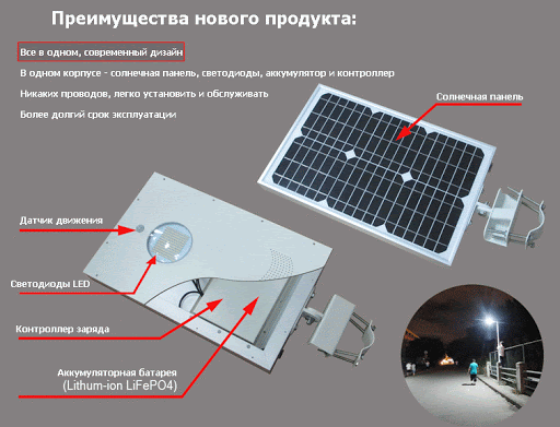 - haute efficacité des lampes, du fait que lors de leur installation et de leur fonctionnement, il n'est pas nécessaire d'effectuer des travaux de terrassement et de payer l'électricité consommée;