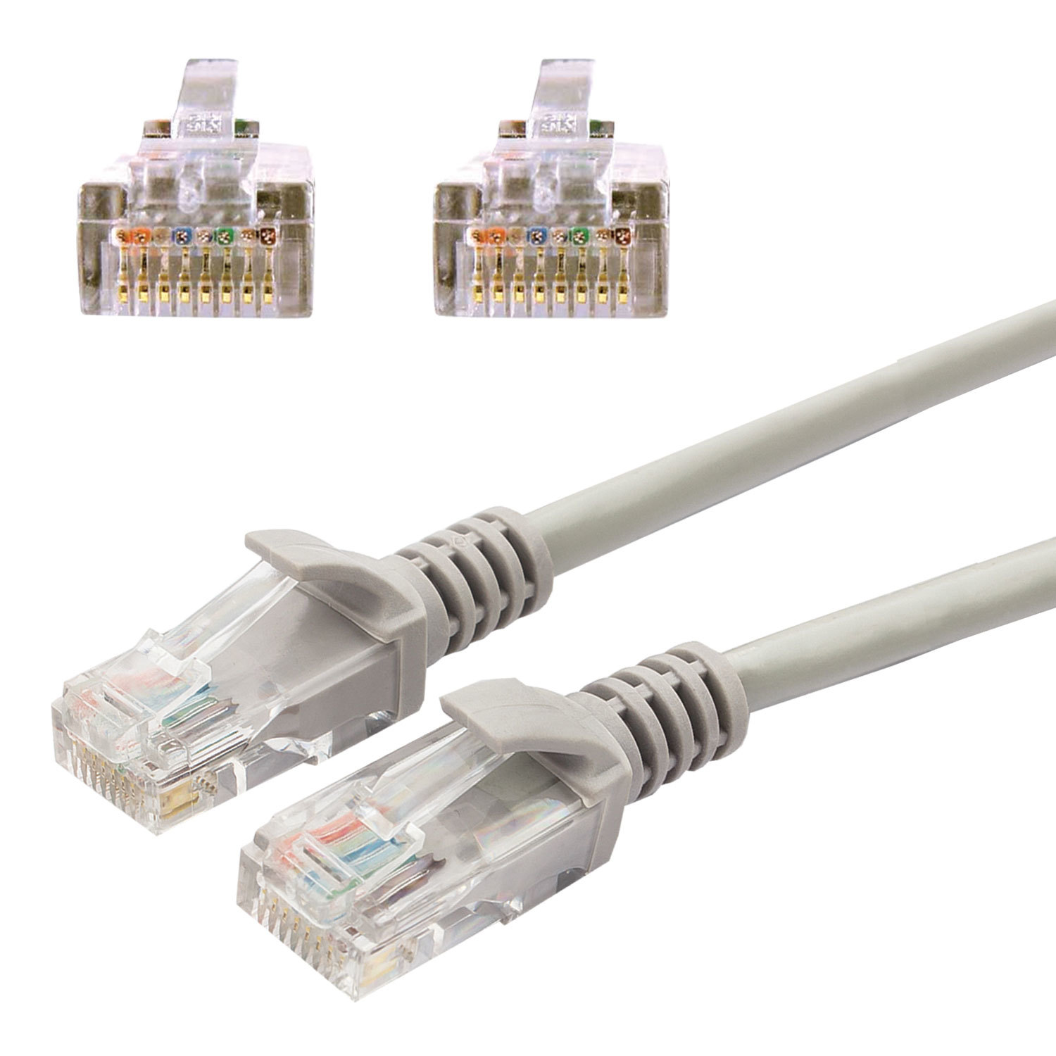 Ensuite, les conducteurs sont coupés à 1 cm et fixés dans le connecteur RJ-45 dans la séquence de couleurs appropriée. Ils sont sertis avec une pince à sertir.