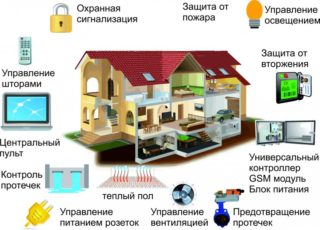 L'ensemble des techniques comprend l'allumage de l'éclairage, le réglage du chauffage et de la climatisation et la garantie de la sécurité. L'automatisation avisera le propriétaire d'une intrusion, signalera une inondation ou l'apparition de fumée. Le système « maison intelligente » résout les scénarios dans lesquels la dépendance de diverses fonctions et la coordination du divertissement, du cinéma maison, du chauffage de la piscine à des heures et des jours spécifiés sont supposées.