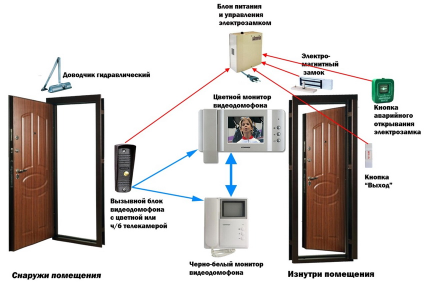 Les fabricants combinent un appel vidéo et un interphone dans un seul appareil. Des systèmes avec un grand nombre de modules fonctionnels sont installés dans de grandes installations et entrepôts, car il est possible de coordonner les caméras à plusieurs entrées d'un même gadget de lecture.