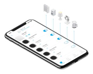 Selon le modèle, le kit intelligent contient jusqu'à 8 produits labellisés et une télécommande avec le nombre de canaux souhaité. Il possède des boutons marche/arrêt, qui sont situés par paires et numérotés en fonction des prises contrôlées.