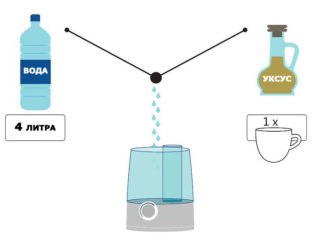 Pour éliminer les moisissures, vous aurez besoin de produits spéciaux contenant du chlore que vous pouvez préparer vous-même. Vous aurez besoin de vinaigre ou de peroxyde d'hydrogène. Les composants sont dilués dans une proportion de 1-2 cuillères à soupe pour 1 litre d'eau bien bouillie, après quoi la solution résultante est versée dans un récipient humidificateur pendant environ une heure. Les compositions ainsi préparées désinfectent bien la surface et permettent d'éliminer la plaque muqueuse.