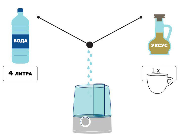 Pour entretenir les appareils à ultrasons, une solution est utilisée, préparée à partir d'un mélange de vinaigre et d'eau additionné de soude ou d'acide citrique. Il est interdit de les laver avec des composés agressifs tels que le peroxyde d'hydrogène, car cela conduit souvent à leur usure prématurée. Lors de leur utilisation, des produits chimiques peuvent pénétrer dans l'eau pulvérisée par l'appareil lui-même. Si vous ne le lavez pas soigneusement, les locataires peuvent développer des signes de malaise (maux de tête sévères ou exacerbation d'allergies).
