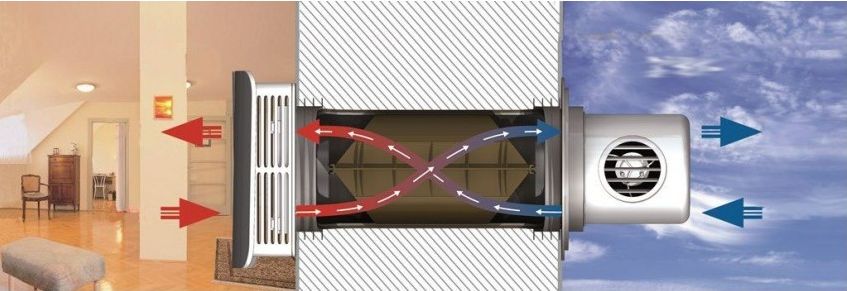 Le mécanisme permet de réduire les pertes de chaleur tout en maintenant le flux d'air frais dans la pièce. Une combinaison d'un apport constant d'oxygène et de maintien d'une température optimale est fournie. Lorsqu'il fait suffisamment chaud à l'extérieur, l'utilisateur ne peut pas connecter les appareils de chauffage, ce qui contribue en outre à économiser de l'énergie. Cela garantit une élimination efficace des odeurs désagréables et des impuretés dans l'air. Les avantages incluent la petite taille des unités et la facilité d'installation. Ils sont disponibles dans un grand nombre d'options - pour le placement dans une salle de bain, l'intégration dans une niche, etc.