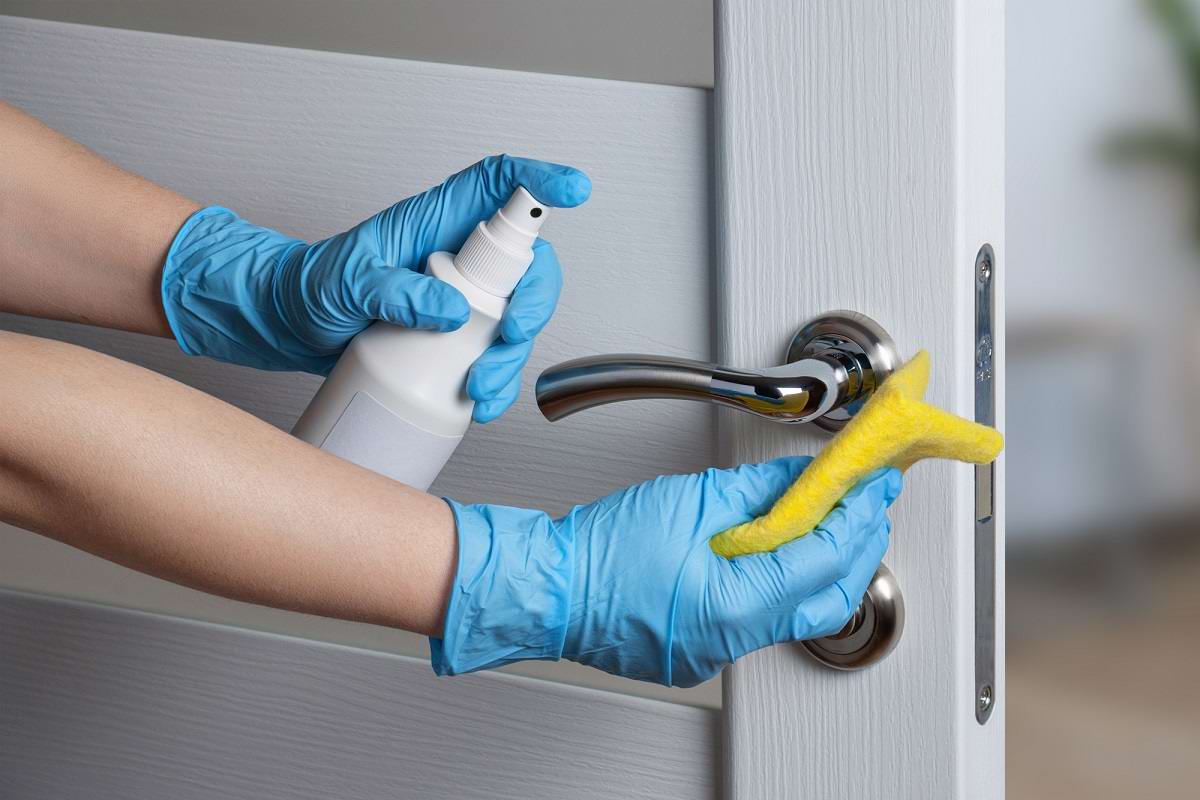 - Traiter avec une solution désinfectante spéciale toutes les surfaces de la pièceavec une attention particulière aux poignées de porte, boutons d'armoire, interrupteurs, claviers d'ordinateur, téléphone et autres surfaces avec lesquelles vous entrez le plus souvent en contact. Si vous ne pouviez pas acheter de solution de désinfection, vous pouvez la préparer vous-même (mais cela ne fonctionnera pas pour le matériel): diluez du vinaigre dans des proportions de 3: 1 dans de l'eau, ou de l'ammoniac, vous pouvez traiter les surfaces de la chambre avec la composition résultante .