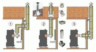Les cheminées pour poêles dans les garages et les bains sont organisées selon d'autres schémas: