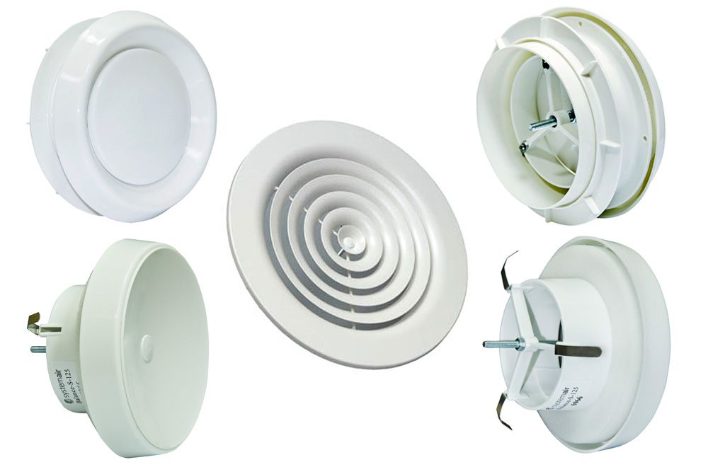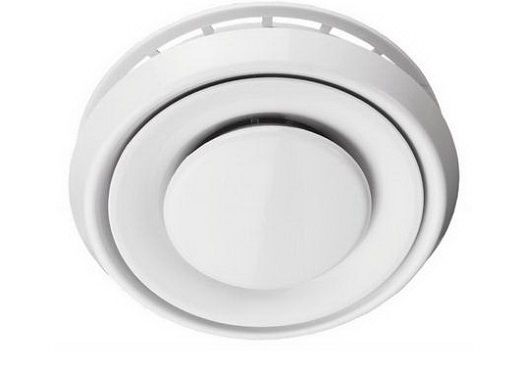 - Un diffuseur de ventilation aspirante est capable d'aspirer un flux d'air important qui le traverse, presque sans rencontrer de résistance. Dans ce cas, la forme de la partie centrale est telle qu'un flux d'air en forme de cylindre vertical est aspiré (si le diffuseur est installé au plafond). Cela garantit que l'air est rapidement évacué du centre de la pièce.