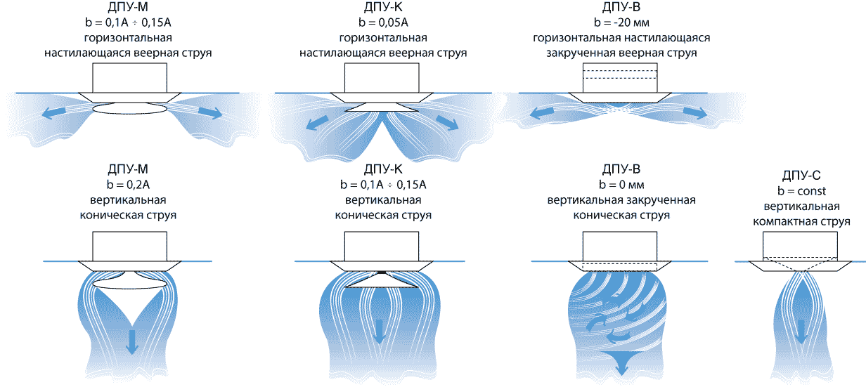 - Les modèles à jet ont un diffuseur d'alimentation. Il existe des conceptions standard et flexibles. Leur particularité est que l'air frais entre sous forme de jets, tandis que la portée et la vitesse de son alimentation augmentent.