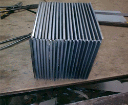 Les petites plaques rectangulaires sont découpées dans de l'étain ou d'un autre métal mince, qui doivent être installées parallèlement les unes aux autres. Leurs dimensions doivent être légèrement inférieures aux dimensions intérieures de la boîte. Dans ce cas, le liège technique peut être utilisé comme élément de remplissage et porteur.