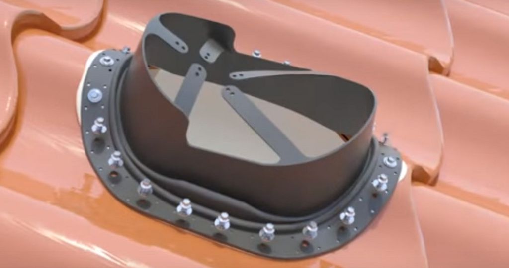 - De plus, la partie inférieure de la hotte est traitée avec un mastic adhésif résistant à l'humidité et est mise en place à l'aide de vis à toiture.