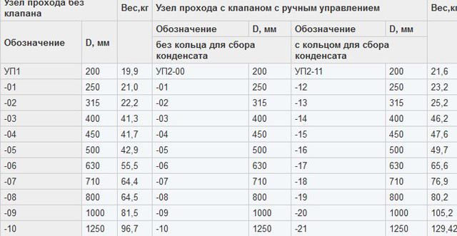Les lettres « УП » sont des marques généralement acceptées. S'il n'y a pas d'éléments dans la conception des ensembles, cela est indiqué par les numéros de 1 à 10. Ceux-ci comprennent une bague de récupération des condensats et une vanne.