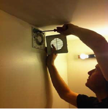 Conformément à la procédure précédemment envisagée pour l'installation d'un ventilateur dans les toilettes, à ce stade des travaux, il est installé dans la trappe de ventilation. L'ordre des opérations effectuées dans ce cas est le suivant :