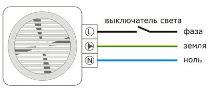 - Dans les cas où le développement d'un système de ventilation dans les toilettes est effectué avant le début de la construction d'une maison privée, le projet doit prévoir une ligne électrique séparée pour le ventilateur avec un interrupteur installé dans la rupture du fil de phase du circuit d'alimentation.