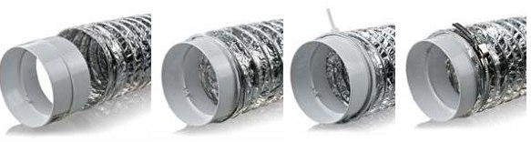 - Pas d'isolation thermique. Les manchons non isolés sont faits de papier d'aluminium avec l'ajout de polyester. Le plus souvent, de tels éléments sont utilisés pour l'installation de systèmes de ventilation dans des zones cachées de la pièce ou pour joindre la ligne principale avec des grilles de ventilation.