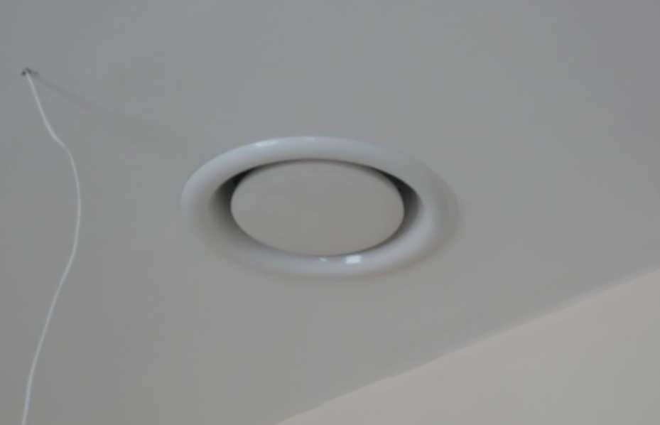 - Un trou est percé dans le plafond avec un diamètre correspondant à la taille du diffuseur.