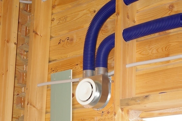 - À partir de la sortie principale du système de ventilation, une section d'un conduit d'air flexible est alimentée dans la zone d'installation proposée du diviseur.
