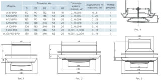 Les diffuseurs des diffuseurs d'air de la série AN sont disponibles dans des diamètres de 100, 125 et 150 millimètres. La valeur maximale de l'ouverture des volets de réglage pour ces modèles atteint 16, 13 et 21 millimètres.