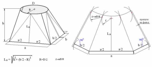 - Le fond est réalisé sous la forme d'une base, qui est fixée à la tête de la cheminée. Il y a des trous pour le matériel dans le boîtier. L'ensemble comprend des passages de toit à un angle de 15 - 35 ° à la demande de l'acheteur.