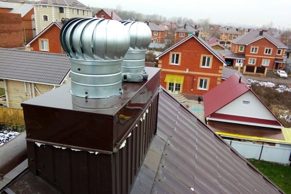 - Dans les maisons du secteur à étages et les bâtiments privés. Le dispositif augmente le tirage dans les conduits de ventilation des derniers étages, élimine le risque de tirage inversé. Dans leurs propres maisons, le déflecteur est installé pour ventiler les caves, les celliers, les épiceries, et est utilisé pour les cheminées.