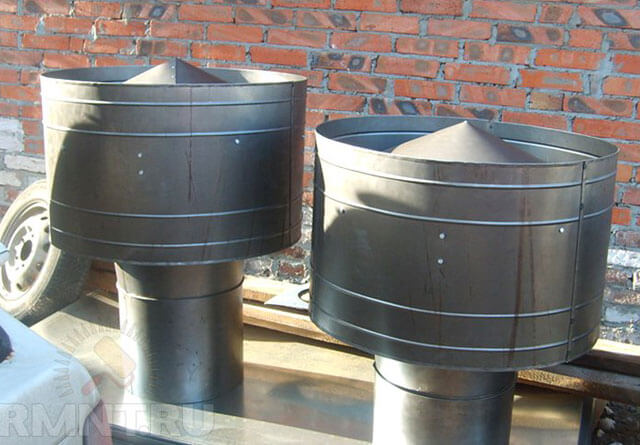 La conception de TsAGI vous permet de couper efficacement le flux d'air, ce qui contribue à l'élimination rapide des fumées du conduit d'évacuation. Le parapluie situé à l'intérieur offre une protection fiable contre les influences climatiques. Un inconvénient important de cette conception est la complexité de sa fabrication à la maison.