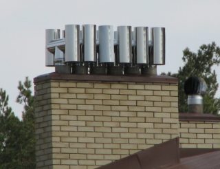 Si, par exemple, un déflecteur de trop grande taille doit être installé sur le tuyau d'une maison en brique, il est recommandé d'utiliser des entretoises métalliques de la longueur requise pour renforcer sa fixation.