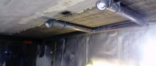- L'arrivée d'alimentation se fait au bas d'un des murs du garage, et la hotte se trouve dans la partie supérieure du mur opposé.