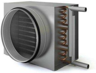 Un radiateur est un échangeur de chaleur qui transfère l'énergie caloporteuse à un flux d'air chauffant et fonctionne sur le principe d'un sèche-cheveux. Sa conception comprend des protections latérales amovibles et des éléments de dissipation thermique. Ils peuvent être connectés en une ou plusieurs lignes. Le ventilateur intégré fournit un tirage d'air et la masse d'air pénètre dans la pièce par les espaces entre les éléments. Lorsque l'air extérieur les traverse, de la chaleur lui est transférée. L'appareil de chauffage est installé dans le conduit de ventilation, l'appareil doit donc correspondre à la taille et à la forme de la gaine.