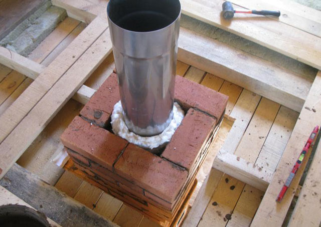 Après avoir construit une cheminée de vos propres mains à partir d'un tuyau en fer avec isolation, vous ne pouvez pas vous soucier de sa finition supplémentaire. Le produit ne chauffe pas réellement, il peut être posé à travers un plafond en bois sans installer de tablier.