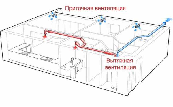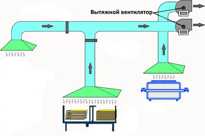 La ventilation forcée est le plus souvent installée dans une salle de bain, associée à des toilettes, ou dans la cuisine. Pour ce faire, un puissant ventilateur est installé dans la gaine de ventilation qui va aux toilettes et une hotte typique est fabriquée dans la cuisine, ce qui assure l'évacuation de l'air évacué.