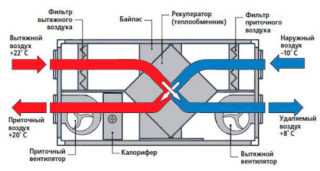 La liste des systèmes combinés les plus populaires comprend la ventilation de type soufflage et évacuation avec récupération. Cela permet d'économiser les ressources énergétiques pendant le fonctionnement, car l'air soufflé et extrait sont intégrés dans une unité qui déplace à la fois l'air soufflé et extrait. Deux branches doivent être placées dans un appareil afin de déplacer les flux d'air; à l'intersection, des récupérateurs sont installés, qui transfèrent la chaleur à l'air soufflé à partir de l'air extrait. Dans certains cas, de tels systèmes permettent d'économiser jusqu'à 80 % de chaleur et de la renvoyer dans la pièce. Des récupérateurs rotatifs ou à plaques sont utilisés pour eux.