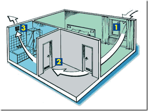 Ce type de ventilation est considéré comme le plus populaire; dans ce schéma, les masses d'air sont mises en mouvement en raison de la différence de pression entre l'atmosphère externe et interne. Pour que ce système fonctionne, la pression de la rue doit être inférieure à la pression à l'intérieur de la pièce, après quoi l'air commencera à circuler à travers les conduits de ventilation. De tels canaux sont installés dans les murs des maisons à plusieurs étages et privées. Le principal avantage de la ventilation standard est son faible coût, car l'installation du système ne nécessite pas de coûts importants.