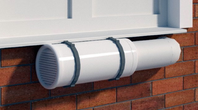 - Une unité d'admission d'air extérieur qui sera installée sur la charpente du côté de la rue. Il est important d'installer une visière sur le dessus pour protéger l'appareil des précipitations.