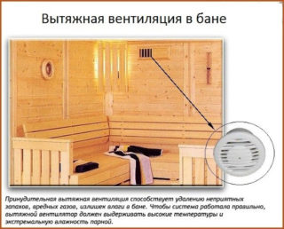 La ventilation dans le bain est nécessaire, car elle est construite de manière à la rendre aussi étanche que possible. La température et l'humidité élevées de l'air contribuent à la formation de moisissures et le manque d'oxygène empêche la combustion normale dans le poêle et la respiration des personnes pendant les procédures de bain. Il est particulièrement important d'avoir un système de ventilation efficace lors de l'utilisation de poêles à gaz et à combustible solide. Grâce à une ventilation de haute qualité, le flux d'air frais est assuré, le microclimat est normalisé, le bois reste inchangé: il ne pourrit pas et ne moisit pas, les odeurs désagréables sont éliminées.
