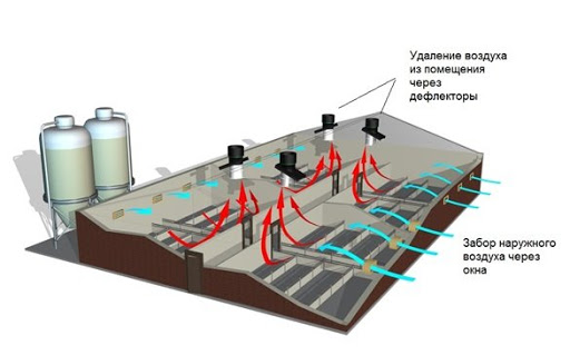 Les qualités positives de l'échange d'air naturel incluent le faible coût de l'organisation. L'installation de filtres, de ventilateurs professionnels, de diffuseurs et d'autres équipements techniques n'est pas requise. Mais en raison de l'impossibilité de contrôle, un tel système ne peut pas être le seul en production. Aussi, le volume de renouvellement des masses d'air est insuffisant pour maintenir un microclimat optimal.