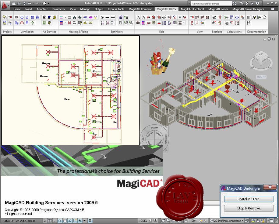 Il s'agit d'un programme pour la conception de systèmes de ventilation, de chauffage, d'adduction d'eau et d'assainissement, de réseaux électriques. MagiCAD calcule et réalise les dessins nécessaires.