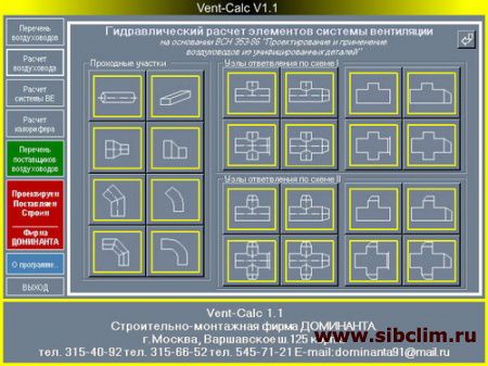 Le logiciel de conception Vent-Calc est l'un des plus fonctionnels et abordables. L'algorithme de son travail est basé sur les formules Altshul. Les calculs hydrauliques des conduits d'air sont effectués selon la méthode tirée du "Designer's Handbook" édité par Staroverov. Il gère aussi bien le calcul de la ventilation naturelle que forcée.