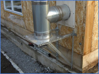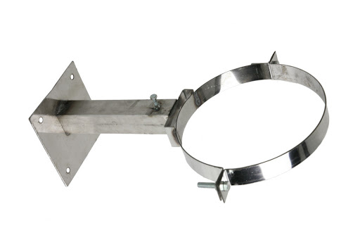 La cheminée est fixée au plan du mur grâce aux pinces de support de différents diamètres et longueurs des supports. Parfois, à la place d'eux, il y a un poteau qui, au bout, a la forme d'une vis. Cette pièce est simplement vissée dans un goujon en plastique inséré dans le béton.