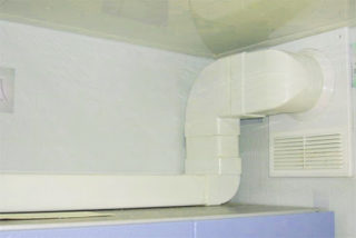 La violation de cette dernière exigence entraînera une décélération du flux d'air libre et une augmentation significative de la charge sur le moteur électrique du dispositif d'échappement. Dans l'ensemble, cela entraînera une augmentation du bruit du système, ce qui viole les conditions de séjour confortables dans la cuisine. Pour la disposition d'un réseau complexe de conduits d'air, on utilise généralement des tuyaux fabriqués à partir d'une feuille épaisse. D'en haut, ils sont fermés avec des boîtes en PVC ou en plaques de plâtre, qui donneront au design un aspect esthétique et ne perturberont pas l'intérieur de la cuisine.