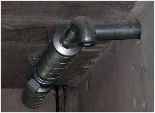 - Tubulaire. Il s'agit d'une double structure, où un tuyau est situé à l'intérieur d'un autre, qui a un plus grand diamètre. La partie intérieure a des trous et la partie extérieure est solide et lisse. L'espace entre les sections est rempli d'un matériau d'insonorisation afin qu'il ne reste aucun vide. La forme en coupe du silencieux tubulaire pour la ventilation peut être ronde, carrée et rectangulaire. La section du tuyau intérieur doit correspondre ou être plus grande que le canal dans lequel l'appareil est installé. Dans la plupart des cas, ces silencieux sont montés sur des autoroutes d'un diamètre allant jusqu'à 50 cm.La longueur de l'appareil lui-même est limitée à 120 cm.
